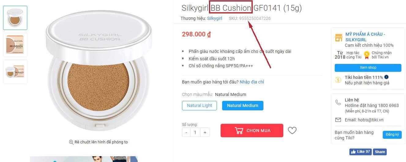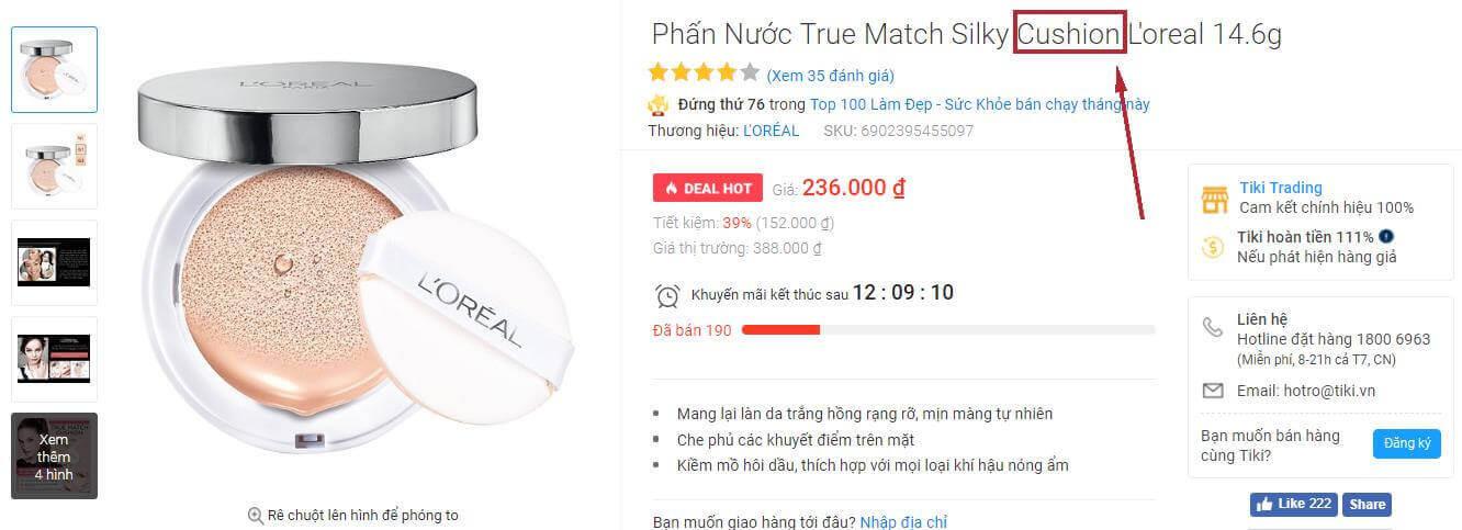 Loại nguyên bản sẽ có chữ cushion trong sản phẩm: